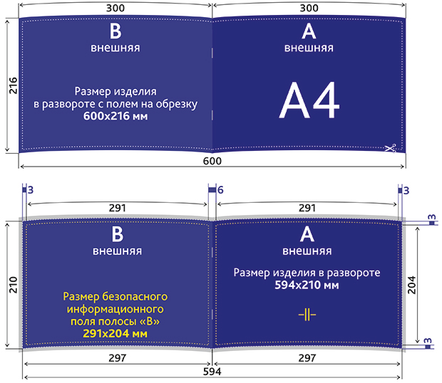 Размер безопасного информационного поля: 291x204 мм (где будет текст, логотип);
