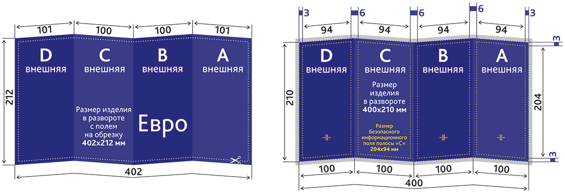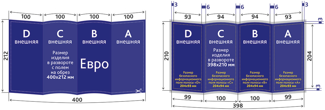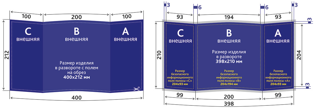 Размер безопасного информационного поля: 204x194 мм / 204x93 мм (где будет текст, логотип);