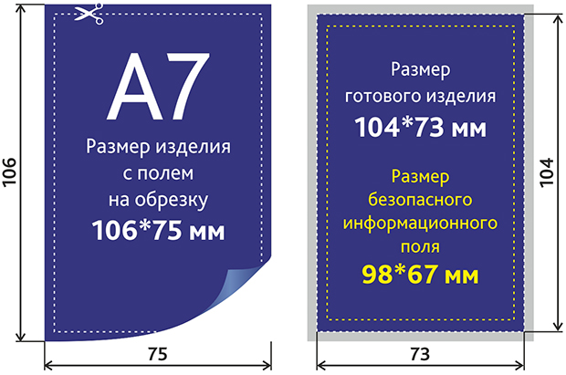 Размер флаера с припусками на обрез 106x75 мм (т.е. по 1 мм с каждого края);