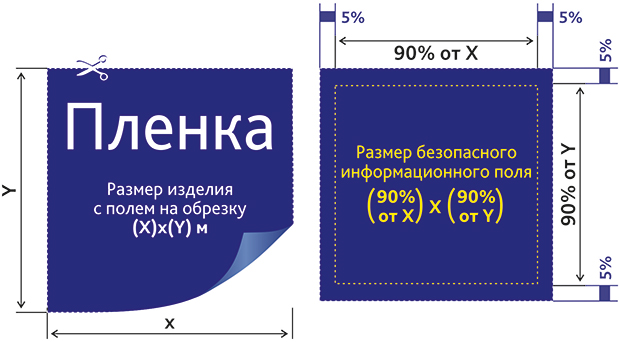Размер безопасного информационного поля (где будет текст, логотип): (90% от Х) х (90% от Y) м;