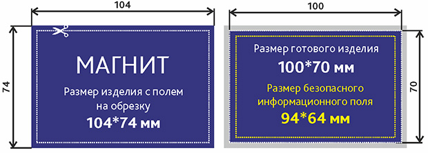 Размер магнита с припусками на обрез 104x74 мм (т.е. по 2 мм с каждого края);